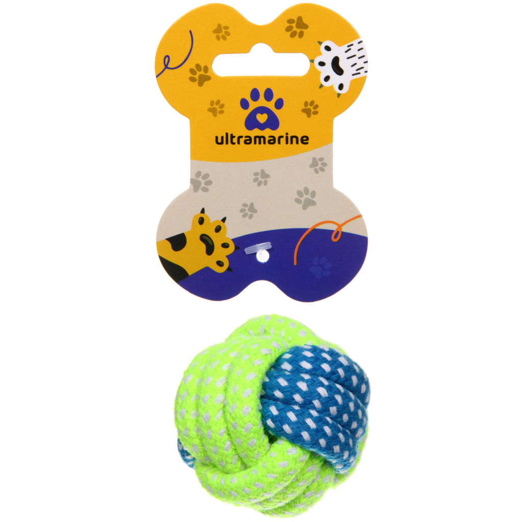 • Цена за 6 шт. Игрушка - мячик для собак средних и мелких пород "КАНАТНЫЙ ИГРУЛИК", желтый/синий, d-6см (лейбл)