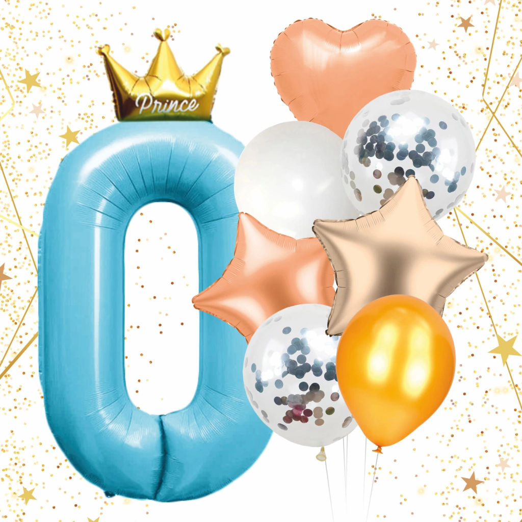 Набор шаров 8 шт "0 - Prince", голубой (цирфа + 7 шаров)­