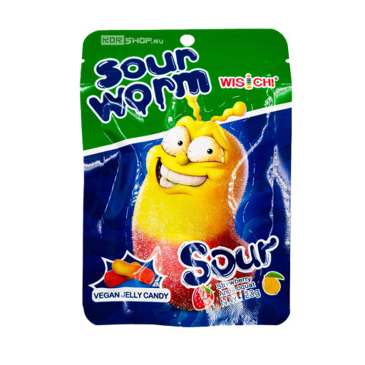 Почтой или ТК: отправляем Артикул: 27433 Вес (брутто), кг: 0.025 Страна: Китай Посылаем почтой или ТК: отправляем Упаковка: Металлизированная упаковка. Условия хранения: Хранить в сухом прохладном месте при температуре не выше +25С, беречь от попадания прямых солнечных лучей. Состав: глюкозный сироп, сахар, пищевая глюкоза, вода, пектин (загуститель), концентрированный яблочный сок, регуляторы кислотности- лимонная кислота, DL-яблочная кислота, DL-динатриевый малат, тринатриевый цитрат, пищевые ароматизаторы Клубника, Мушмула, красители- Е129, Е133, Е171. Срок хранения: 24 месяца. Срок годности: | 19.04.2027 Жевательный мармелад со вкусом клубники и мушмулы Кислый червячок Sour Worm Wisichi это любимые многими лакомками мармеладные червячки, тягучие и мягкие, которые долго жуются и доставляют большое наслаждение своим пикантным кисло-сладким вкусом. Аромат клубники и мушмулы рождает ощущение предвкушения удовольствия. Жевательные мармеладные червячки упакованы в прочную металлизированную упаковку, надежно защищающую ее содержимое и сохраняющую свежесть и мягкость лакомства.