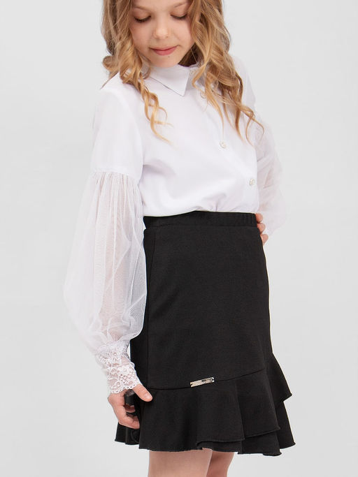 Прекрасно сочетается с разнообразными блузками, водолазками, джемперами.