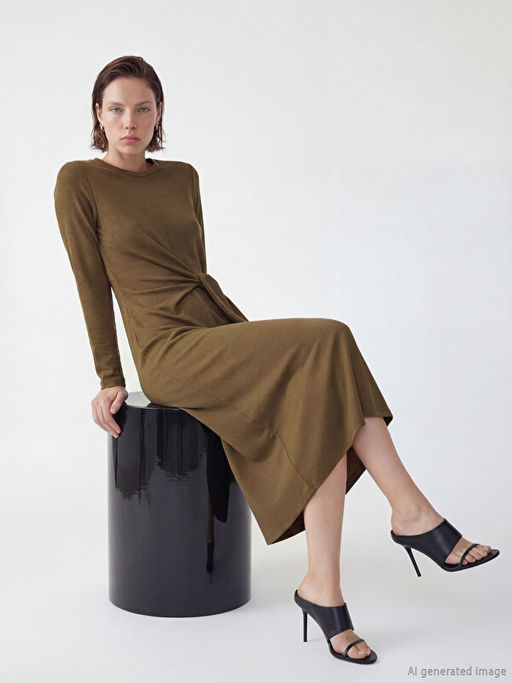 • Bisiklet Yaka Ba?lama Detayl? Elbise
