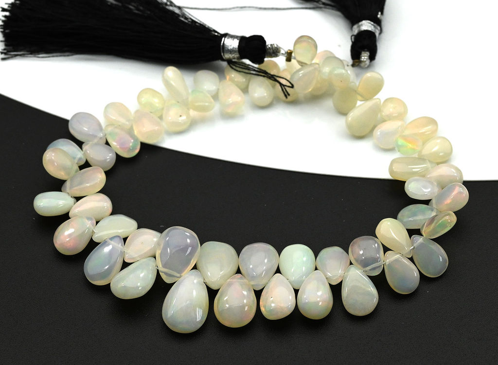 Бусины из натурального опала капля на увеличение 21см, 61 бусина, 12,6г Радуга камня
