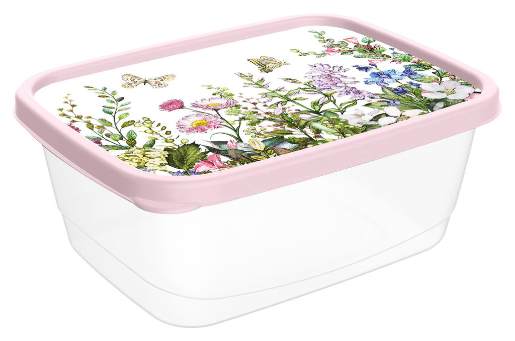 • Цена за 2 шт. Контейнер для продуктов прямоугольный 1,5л с декором "Цветущий луг" (светло-розовый) 223111007/01