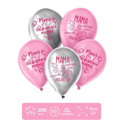 • Воздушные шары латексные 12" «Моей любимой маме», 100 шт.
