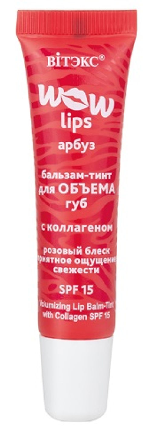 • Домашний косметолог Wow lips Бальзам-Тинт Арбуз для Объема губ с Коллагеном, 10 мл.
