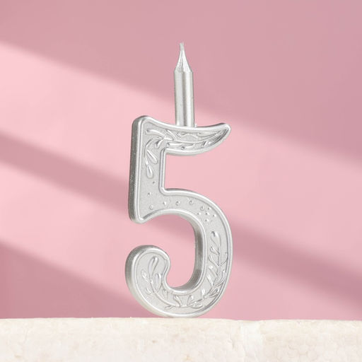 • Цена за 2 шт. Свеча для торта «Серебряный узор», цифра 5