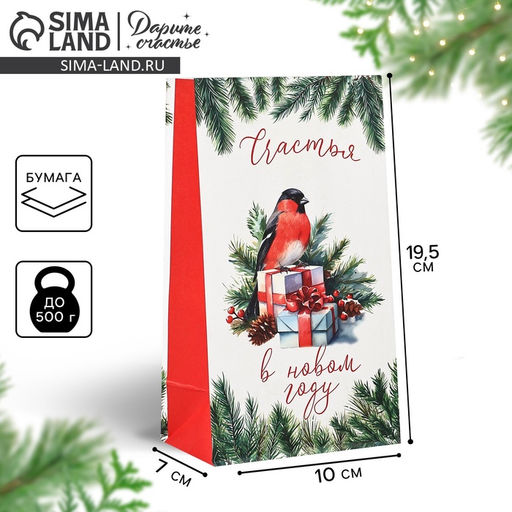 • Цена за 10 шт. Пакет подарочный без ручек «Счастья в Новом году», 10×19.5×7 см