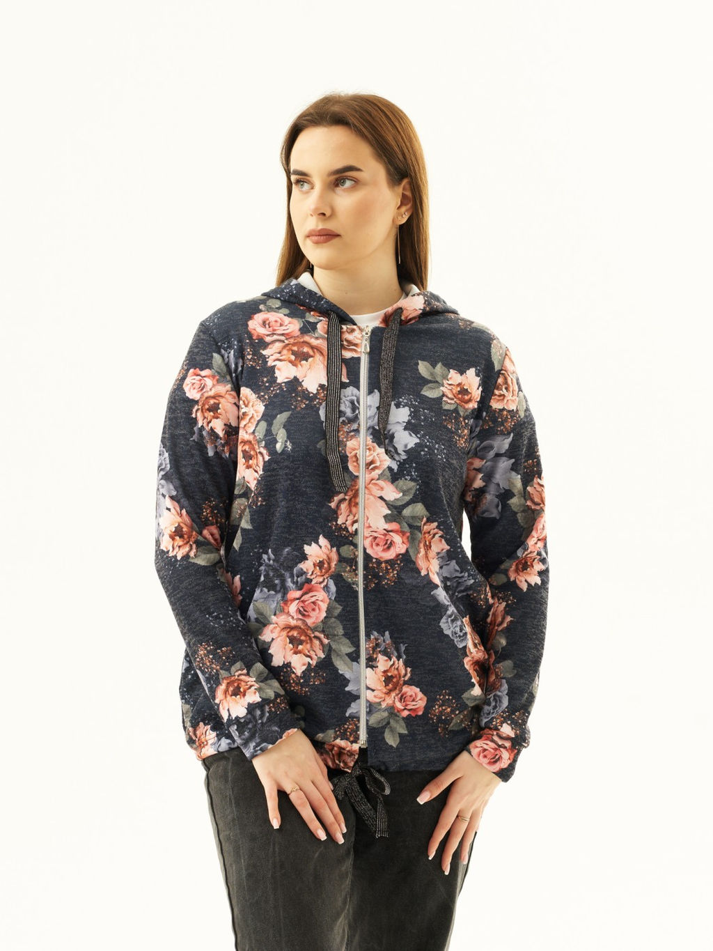 Артикул: Толстовка женская Мираж ПАН т.синий/цветы