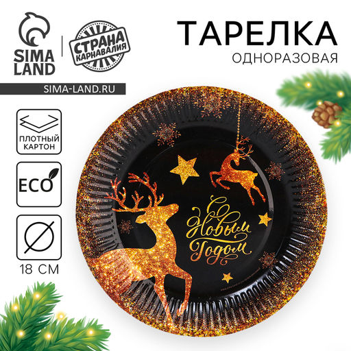• Цена за 20 шт. Тарелка одноразовая бумажная «С Новым годом», 18 см