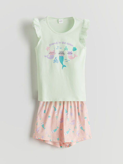 • Bisiklet Yaka K?z ?ocuk ?ortlu Pijama Tak?m?