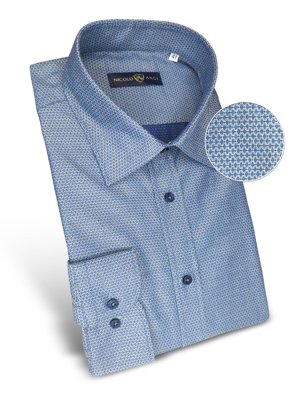 Бренд: Nicolo Angi Длина рукава рубашки: Длинный Карман: Без кармана Силуэт: Полуприталенный силуэт (regular fit) Состав: 80% хлопок, 20% полиэстер Стиль: Деловой Узор (рисунок): Жаккард Цвет: Синий