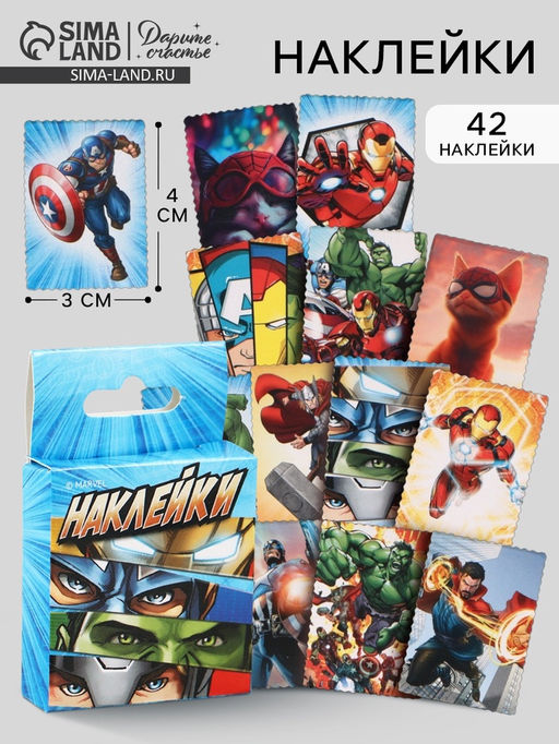 • Цена за 2 шт. Наклейки для подарков «Супергерои», 42 штуки в коробке, 3 × 4 см
