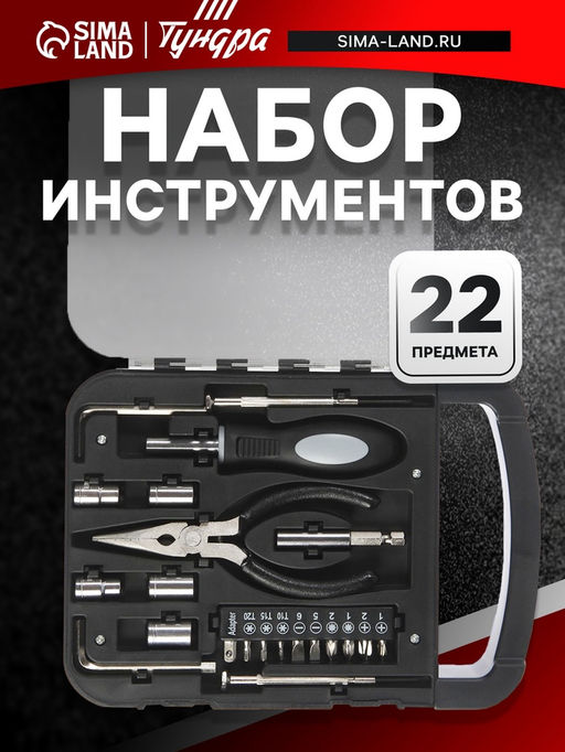 Надежный помощник для решения бытовых задач и не только! Набор инструментов Тундра на 22 предмета в кейсе это продуманная подборка самого востребованного инструмента для дома, гаража или дачи. Комплект собран с учетом практичности и хранится в удобном пластиковом кейсе, который обеспечивает порядок и мобильность.
