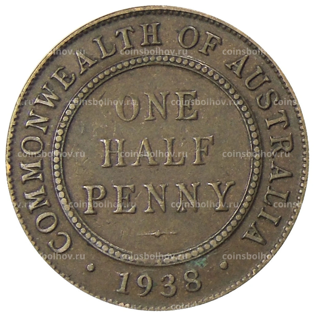 Монета 1/2 пенни 1938 года Австралия