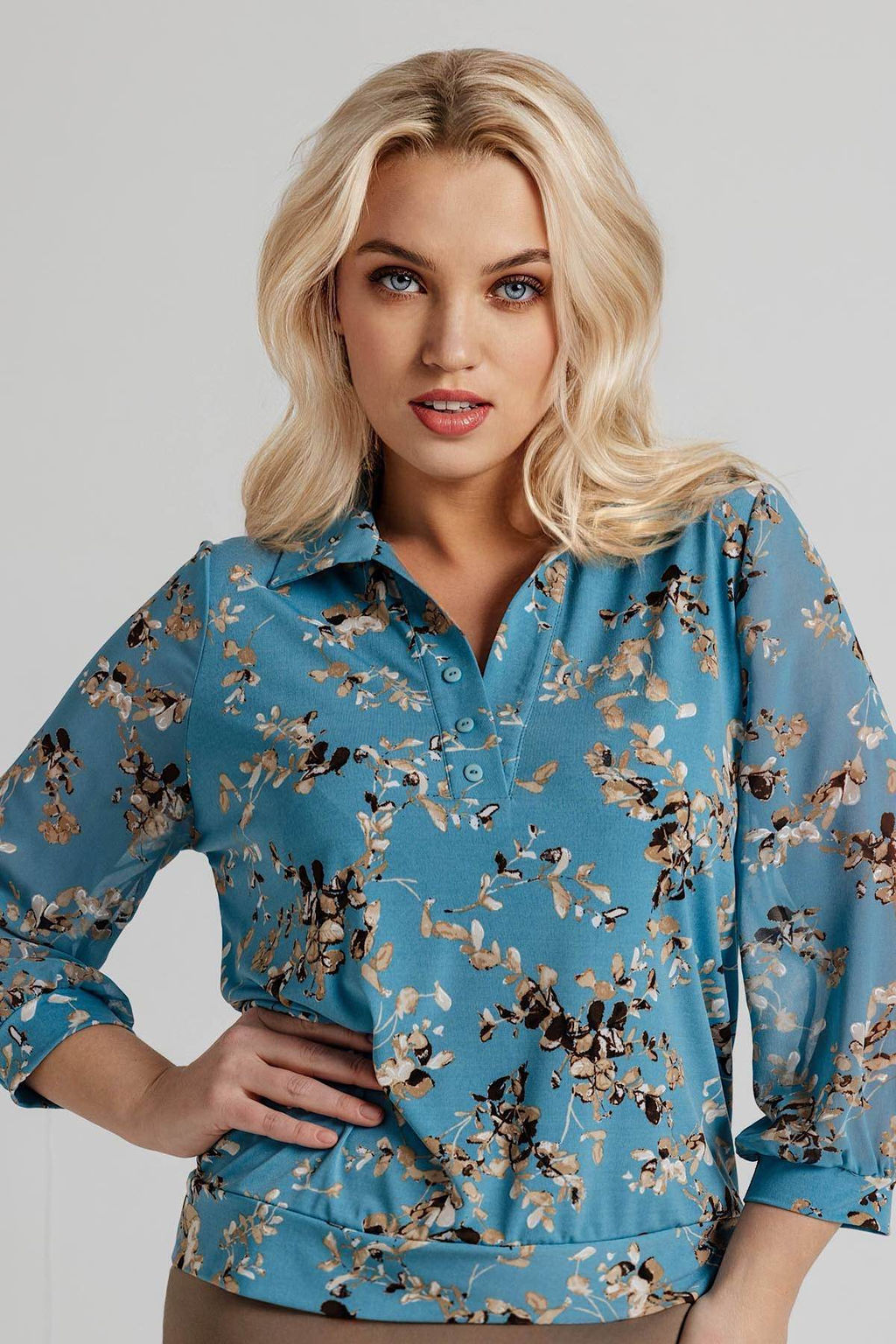 Блузка выполнена из трикотажного полотна, рукав  - шифон 3/4. Воротник. Элегантно смотрится, легко стирается, не теряет и не меняет цвет. Так как в ткани используется большое количество вискозы, ткань дышащая и легко пропускает воздух, сохраняет форму и посадку даже после многочисленных стирок.  Блуза представлена в ярких, современных и модных расцветках. Блузка станет неотъемлимой частью Вашего образа.  Блуза прекрасно подходит для торжеств и повседневных мероприятий. Сочетайте блузу с брюками, юбками, и с любым типом обуви. Блузка бренда RISE - это стиль, качество и комфорт!