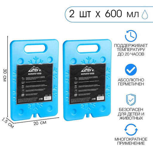 Аккумулятор холода гелевый "Мастер К", набор 2 штуки по 600 мл, хладоэлемент для термосумок, 20 х 30