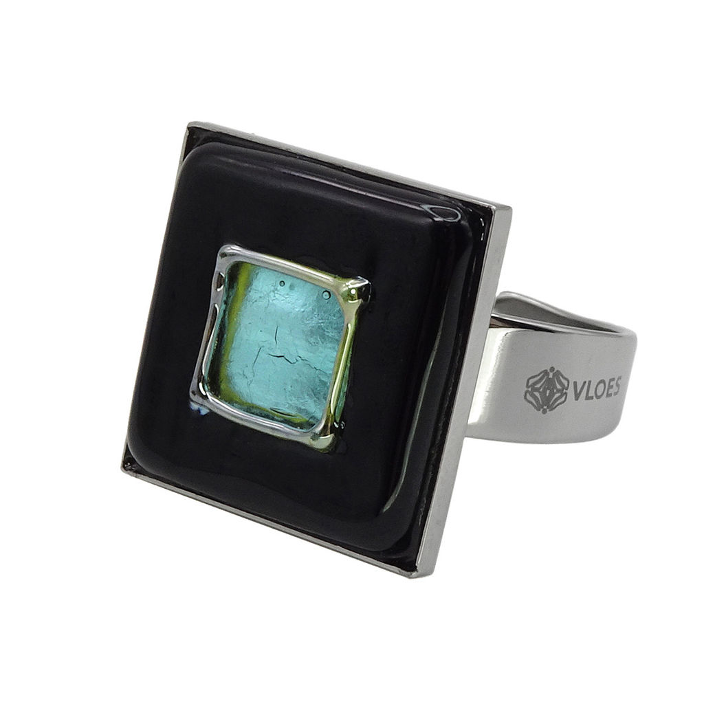 Кольцо изготовлено из муранского стекла и гипоаллергенной ювелирной стали, что очень важно для людей с чувствительной кожей. Металл не темнеет и не подвергается воздействиям окружающей среды, надолго обеспечивая красивый внешний вид изделия. Размер стеклянного элемента - 1,6x1,6 см. Кольцо безразмерное, регулируется с 16 до 19 размера. Вес - 5 гр.