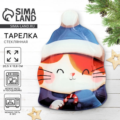 • Тарелка новогодняя плоская «Котик», 13.8×20.5 см
