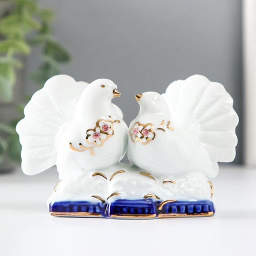 Сувенир керамика "2 воркующих голубя" со стразами 8х11х4,5 см