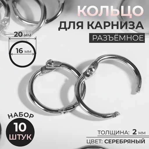 • Цена за 2 шт. Кольцо для карниза, разъёмное, d=16/20 мм, 10 шт., цвет серебряный