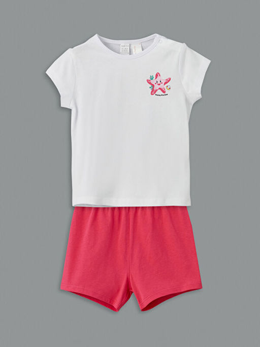 Bisiklet Yaka Bask?l? K?z Bebek Ti??rt ve ?ort 2li