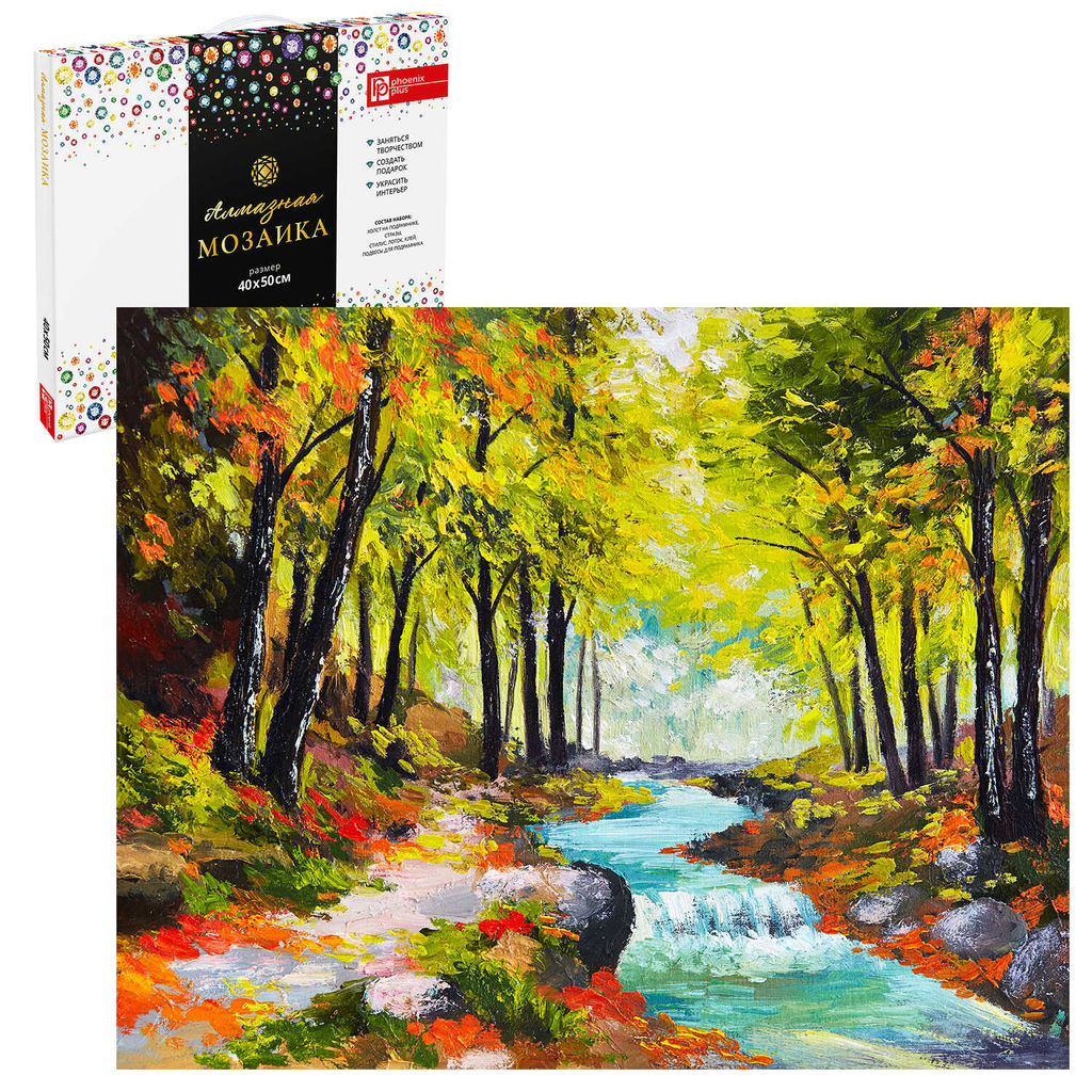 Алмазная мозаика (набор для творчества) арт. 59823 / 16 ЛЕСНАЯ ПРОХЛАДА, размер: 40*50 см, (24 цветов страз, холст на подрамнике с напечатанной картиной, покрытый клеевым слоем и защитной пленкой, пакеты со стразами, лоток для страз, стилус, силикон для страз, клей, подвесы для подрамника, схема, дополнительные пакеты с zip-молнией в комплекте, форма страз: круглая, тип выкладки: полная, картонная коробка с ручкой)