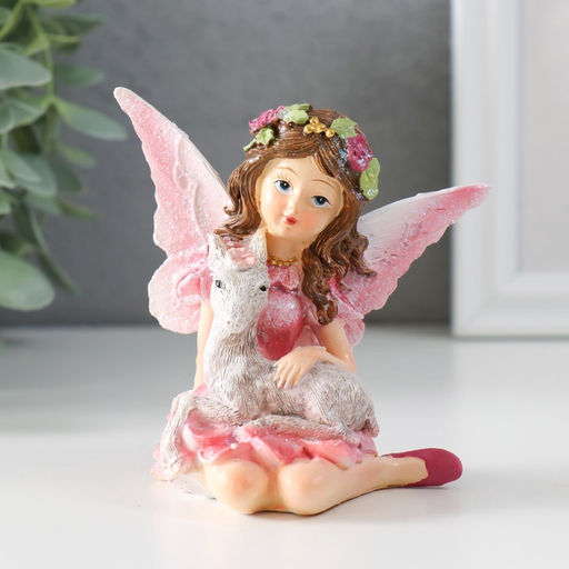 Фигурка полистоун Девочка-бабочка с козликом, розовые крылья, 8.5?6?9 см
