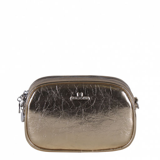 Модель кросс-боди, выполнена из экокожи. Декорирована логотипом на передней части.  Дополнена серебристой фурнитурой. Данная модель закрывается на молнии. Каркас полужесткий. В комплекте имеется съемный ремень-стропа.