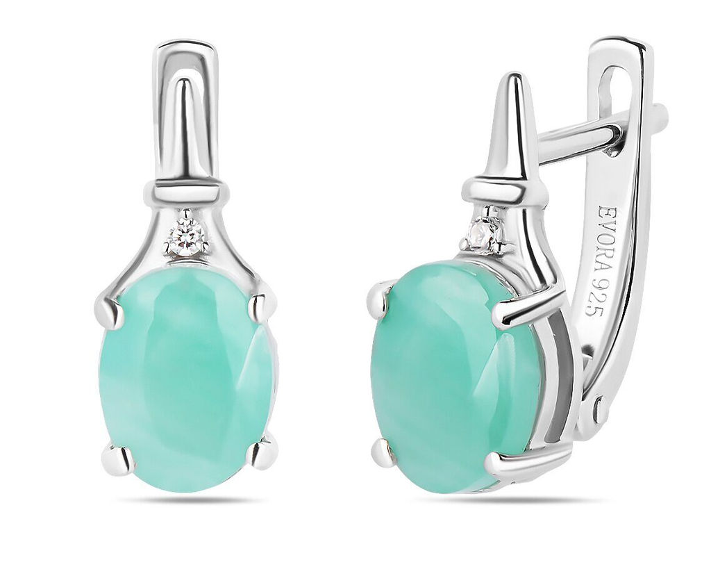 Серьги, арт.658730 Серебро Серебро 925, 3,7 гр., изумруд берилл­