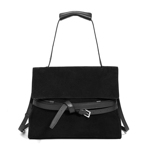 выполнена из натуральной высококачественной замши. Помимо удобной ручки, сумка декорирована акцентным ремнем с пряжкой. Основное отделение закрывается на клапан с двумя магнитными кнопками.  Внутри - карман на