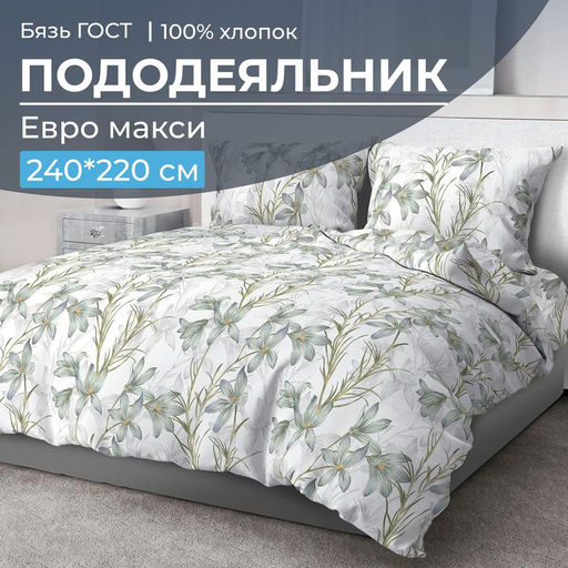 Пододеяльник большого размера Евромакси 240*220 см из бязи ГОСТ, плотностью ткани 140 г/м2. Вход для одеяла расположен внизу пододеяльника. Вам обязательно понравится эта плотная, добротная ткань, которая имеет длительный срок службы. Рисунки на ней смотрятся четко и выразительно. Ну и, конечно, у этой ткани абсолютно натуральный состав - хлопок 100 %. Она очень комфортна, экологична, не деформируется, хорошо впитывает влагу, позволяет коже дышать, что способствует вашему полноценному отдыху! Мы являемся производителями, сами следим за выпускаемой продукцией и гарантируем высокое качество! Наши изделия произведены в Ивановской области, имеют сертификацию качества "ГОСТ 31307-2005", а также зарегистрированы в государственной системе маркировки "Честный знак". -- Характеристики -- Вес: 1380 кг Размерность пододеяльника: Евро макси Размер пододеяльника: 240x220 Замок пододеяльника: С прорезью Длина прорези (см): 70 см Ткань: Бязь ГОСТ Состав: 100 % хлопок Плотность: 140 г/м2 Плотность плетения: Высокая Отделка: Без отделки Режим стирки: При 40 градусах Цвет: Белый Расцветка: Утренний цветок Вид принта: Цветы Целевая аудитория: Взрослая