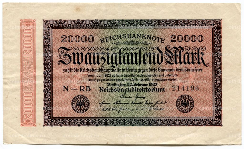 Банкнота 20000 марок 1923 года Германия