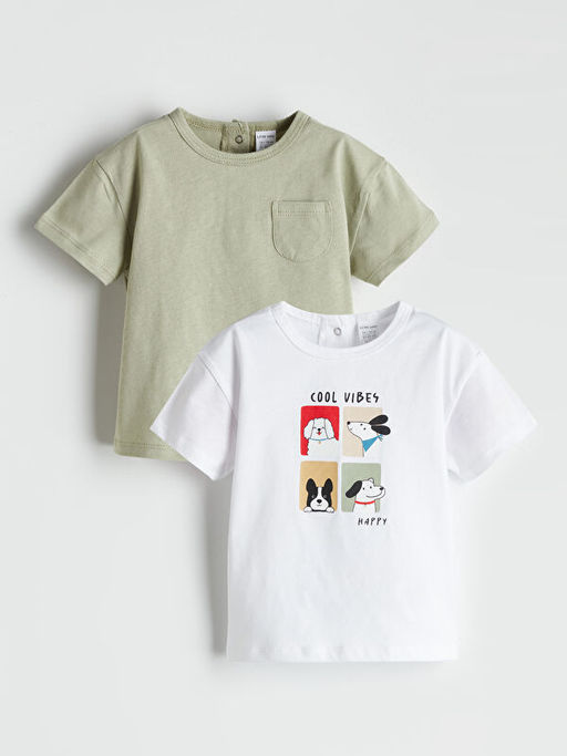 Bisiklet Yaka Bask?l? Erkek Bebek Ti??rt 2li