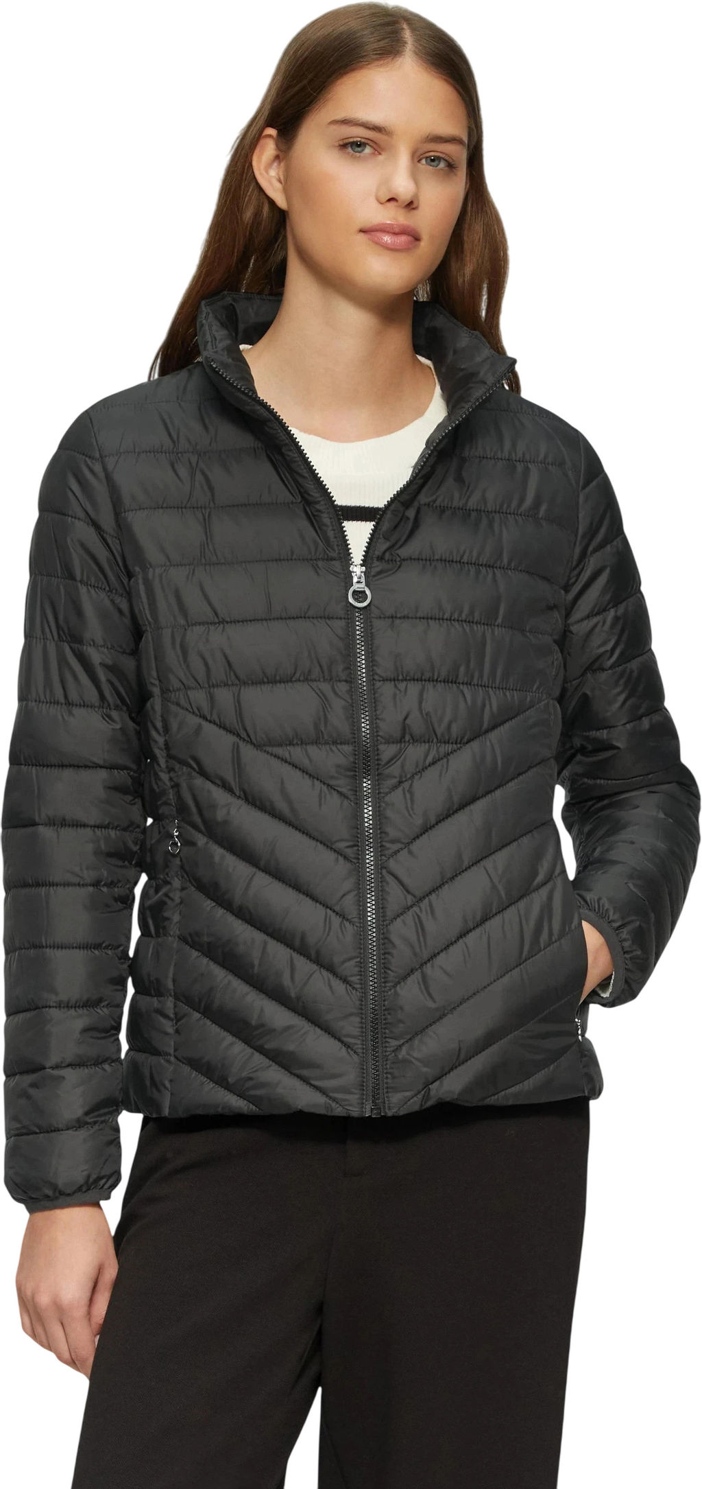 Представляем легкую стеганую куртку от S.Oliver с воротником-стойкой — воплощение комфорта и стиля. Полиэстеровый наполнитель обеспечит вам приятное тепло в прохладные дни, не утяжеляя образ. Благодаря карманам на молнии, все ваши мелочи будут под надежной защитой. Эта универсальная куртка легко впишется в ваш гардероб, добавив нотку современности и элегантности. Оставайтесь в тепле и стиле с S.Oliver, вне зависимости от погоды!