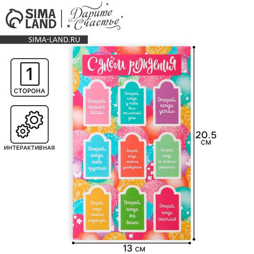 Для кого: Унисекс. Формат: А5. Отделка: Без отделки. Тематика праздника: День рождения. Адресат: Без адресата. Бесплатная доставка: Да. Наша разработка: Да. Размеры товара: 20.5/0.3/13.