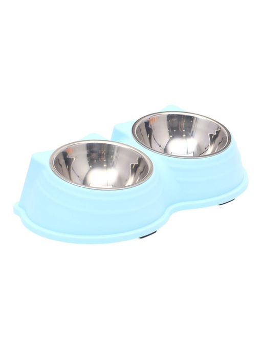 • Миска металлическая двойная на пластиковом основании "Кисы", 28 х 16,3 х 7,3 см, голубая