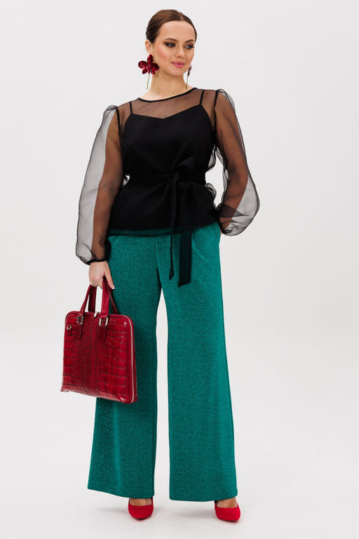 Нарядный женский комплект, состоящий из блузы, топа и брюк.