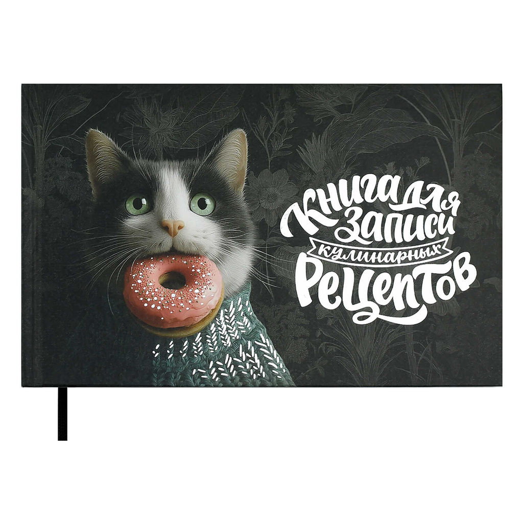 Книга для записи кулинарных рецептов арт. 71084 КОТ С ПОНЧИКОМ / (221х136 мм), 96 л., блок - печать в одну краску, твёрдый переплёт 7БЦ, матовая ламинация, тиснение фольгой/
