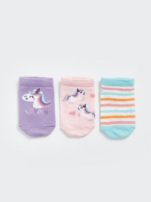 Bask?l? K?z Bebek Patik ?orap 3l?