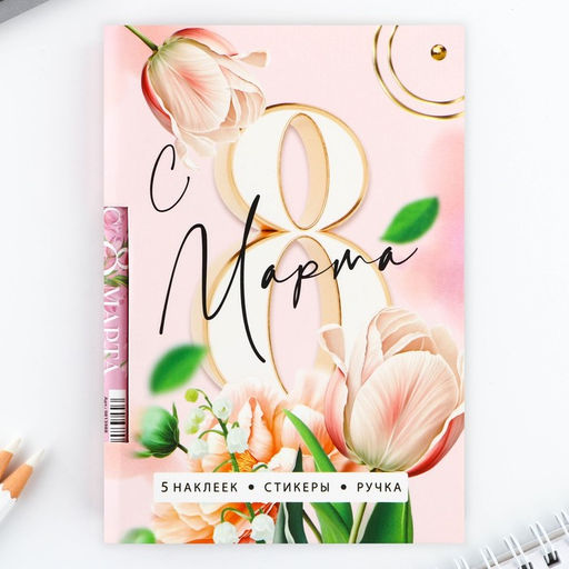 • Подарочный набор, блок бумаги 30 л, ручка синяя паста 1.0 мм, наклейки 5 шт.С 8 Марта