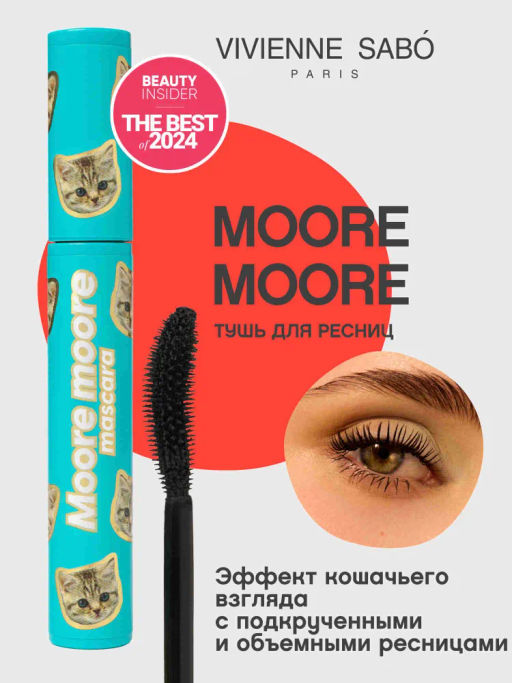 MOORE MOORE тушь для ресниц с эффектом подкручивания и объема от VIVIENNE SAB. С ней твой взгляд станет таким же, как взгляд любимой кошки: игривым, озорным и бесконечно очаровательным. Тушь создает завораживающий закругленный эффект без использования керлера. Щеточка изогнутой формы идеально приподнимает, подкручивает ресницы, придает объем и эффект кошачьего взгляда. Тушь во флаконе лазурного цвета с изображением изящных кошечек делает ресницы густыми, а взгляд выразительным. Ты можешь наслаивать ее без комочков для экстремального объема. Тушь MOORE MOORE от VIVIENNE SAB не только придаст ресницам изгиб и объем, но и наполнит взгляд любовью и нежностью, которую нам дарят наши домашние питомцы.