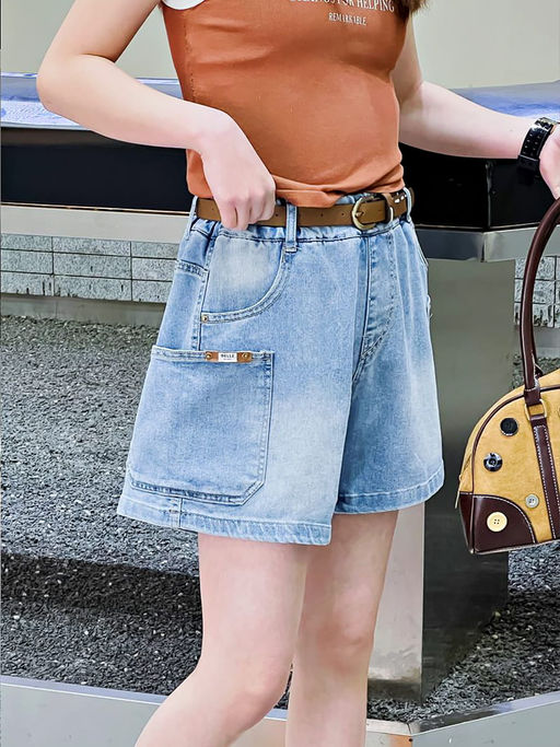 Джинсовые шорты незаменимая вещь в гардеробе каждой девочки. Они легко комбинируются с любой майкой или футболкой. Пояс на широкой, эластичной резинке, без молнии и пуговиц. Модель особенно актуальна на прогулке, на пляже, в бассейне или в путешествии. Ремень в комплект не входит.
