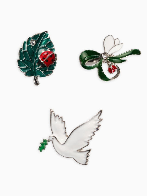 • Броши "Голубь, листик, подснежник" (набор 3шт), цветной в серебре