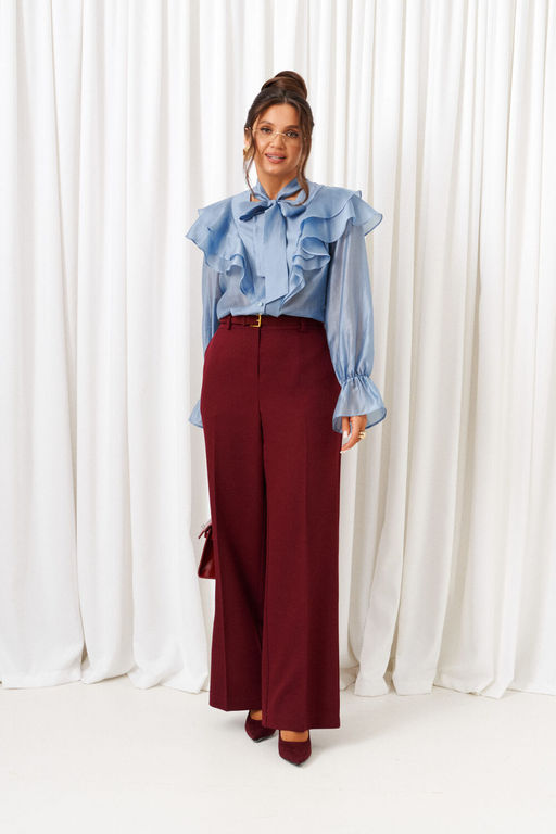 Симфония роскоши и фактур! Сочетание экстравагантной блузы и широких брюк создает гармоничный силуэт, подчеркивая неповторимость образа.