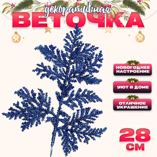 • Цена за 10 шт. Ветка декоративная новогодняя «Изумление», в синем цвете, 0.3×12×28 см