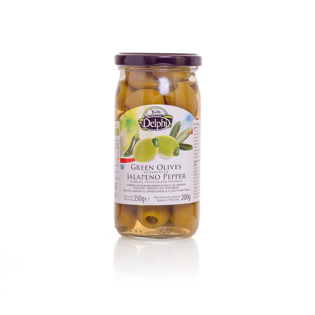 Еще один продукт для гурманов из ассортимента Зеленых оливок DELPHI. Зеленые оливки из Северной и Центральной Греции, фаршированные пикантным джалапено идеально подходят для тех, кто предпочитает пряный вкус. Идеальные котельные оливки. Размер Колоссал 121/140.