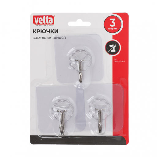 • Набор крючков самоклеющихся 3шт, 6*6см VETTA ПВХ арт. 440-350