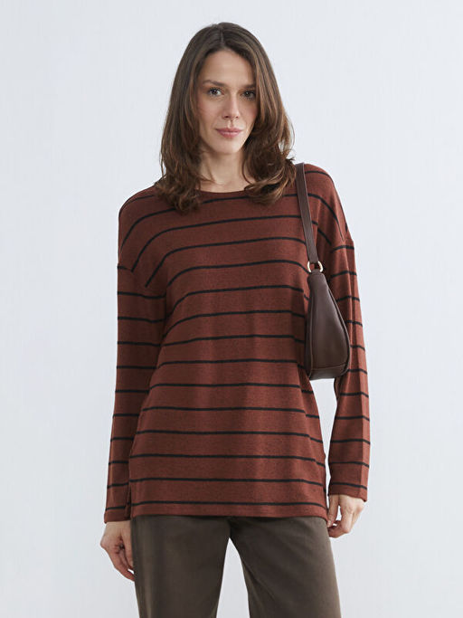 Bisiklet Yaka ?izgili Kad?n Ti??rt
