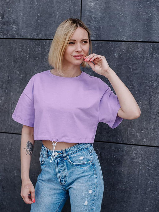Футболка-топ понизу на стяжке. Рукав короткий спущенный.