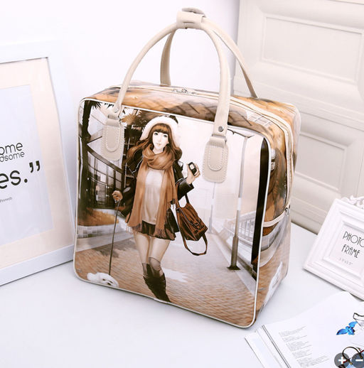 Стильная дорожная сумка из прочной экокожи с ярким декоративным принтом.